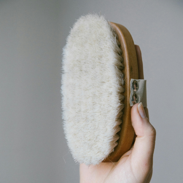 Dry brushing betekent dat je je huid zacht borstelt met een borstel van natuurlijke haren, op een droge huid. Je begint bij je voeten en werkt naar boven, altijd richting je hart.